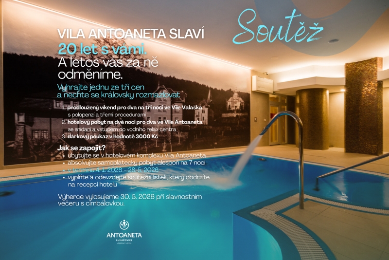 Významné výročí si zaslouží oslavu – a především poděkování těm, kteří jsou jeho součástí. Proto Vila Antoaneta připravila výroční soutěž, ve které mohou hosté vyhrát atraktivní ceny a nechat se královsky rozmazlovat.